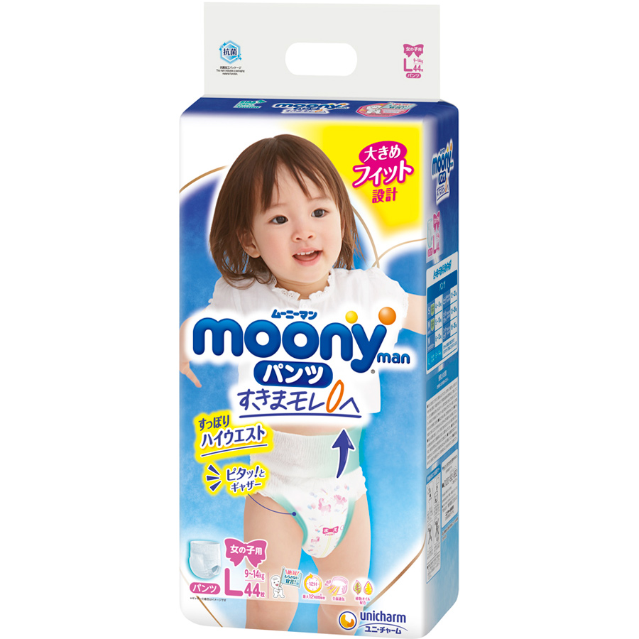 Đến từ thương hiệu Unicharm nổi tiếng Nhật Bản, nằm trong dòng sản phẩm tã giấy Moony, Tã Quần Moony Bé Gái Gói Đại L(44 Miếng) sẽ đem đến cho cô công chúa nhỏ nhà bạn những trải nghiệm thật thích thú. Thiết kế dành riêng cho bé gái với màu hồng dễ thương và họa tiết ngộ nghĩnh, chất liệu cao cấp, mềm mại, đặc biệt phần thun chân vừa vặn, chỉ thị ướt báo thời gian thây tã thuận tiện, từng chiếc tã Moony man không những đem đến cho bé cảm giác thoải mái, dễ chịu tối đa mà còn giúp bố mẹ dễ dàng và tiện lợi hơn trong công việc chăm sóc bé hàng ngày.