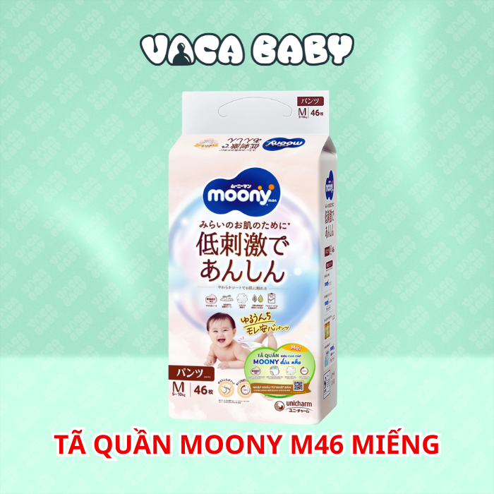 Bỉm - Tã quần Moony Natural size M 46 miếng (Cho bé 5 - 10kg) sở hữu thiết kế mới với lưng thun che phủ trên eo, giảm thiểu các khoảng hở giúp xua tan nguy cơ bị tràn tã, từ đó cho trẻ khô thoáng cả ngày.